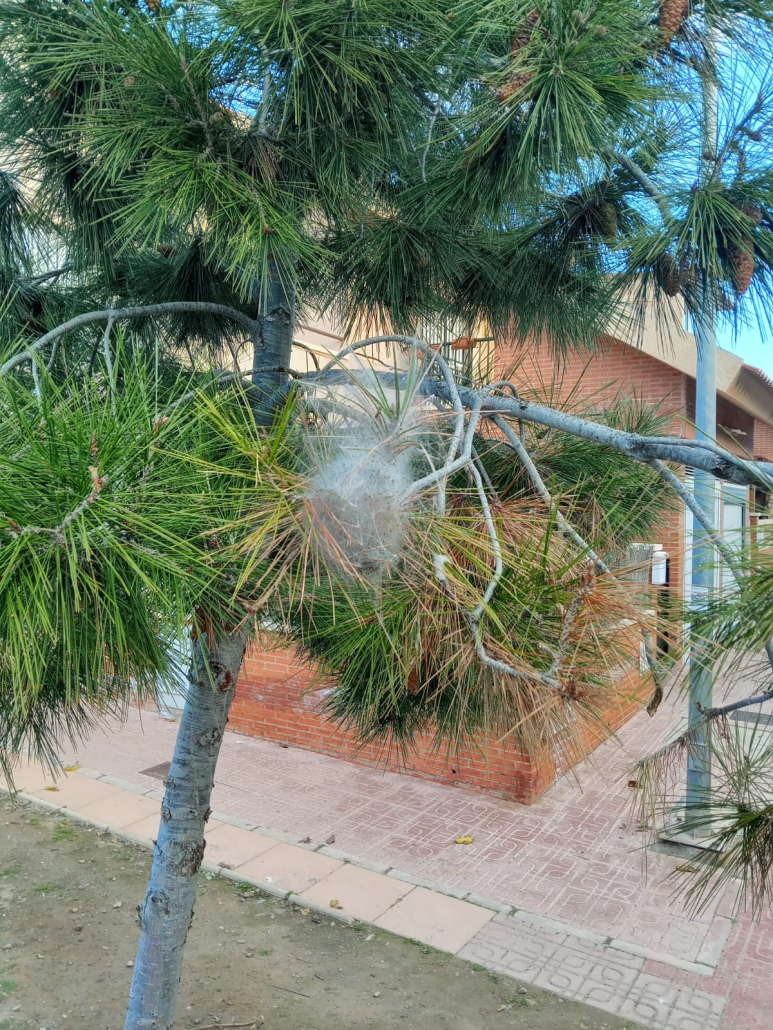 La concesionaria del servicio de Parques y Jardines del Ayuntamiento de Águilas está desarrollando, como es habitual en estos momentos, una campaña de vigilancia y control contra la procesionaria del pino mediterráneo; un insecto lepidóptero que encuentra su principal huésped en el pino carrasco (Pinus halepensis) de nuestra región. Debido a la abundancia de esta especie arbórea en los espacios verdes del municipio de Águilas, la presencia de la procesionaria en los pinos es un fenómeno recurrente que requiere un seguimiento y gestión activa por parte de los servicios municipales.