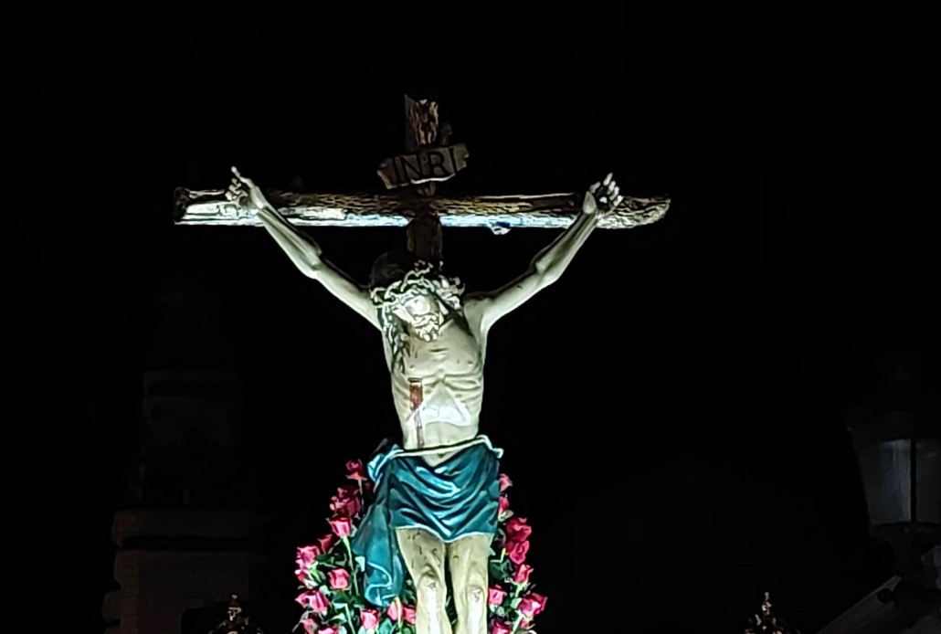 Sale a las 22:00 horas. de la Iglesia de Nuestra Señora de la Asunción, en el barrio de Campoamor, con una de las marchas más emotivas de nuestra Semana Santa, el Santísimo Cristo de la Buena Muerte, tallado en madera por el escultor murciano José Noguera, sobre un trono de caoba policromada, con cuatro faroles y cuatro báculos.