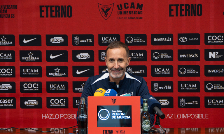 el entrenador de CB UCAM Murcia, Sito Alonsocompareció ante los medios antes del partido contra el MoraBanc Andorra.