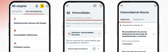 La integración permite que la información de la universidad forme parte de “Mis registros”, una de las secciones clave de Mi Carpeta Ciudadana. De esta forma, los ciudadanos también podrán consultar el estado de sus expedientes universitarios, así como el resto de su información administrativa, desde un único punto. Hasta ahora la integración universitaria se limitaba a los datos de matrícula en “Mis datos”, además de la UMU, ya participan una veintena de universidades. La Universidad de Murcia es la primera en activar esta funcionalidad, en un despliegue que prevé extenderse progresivamente al resto de universidades.